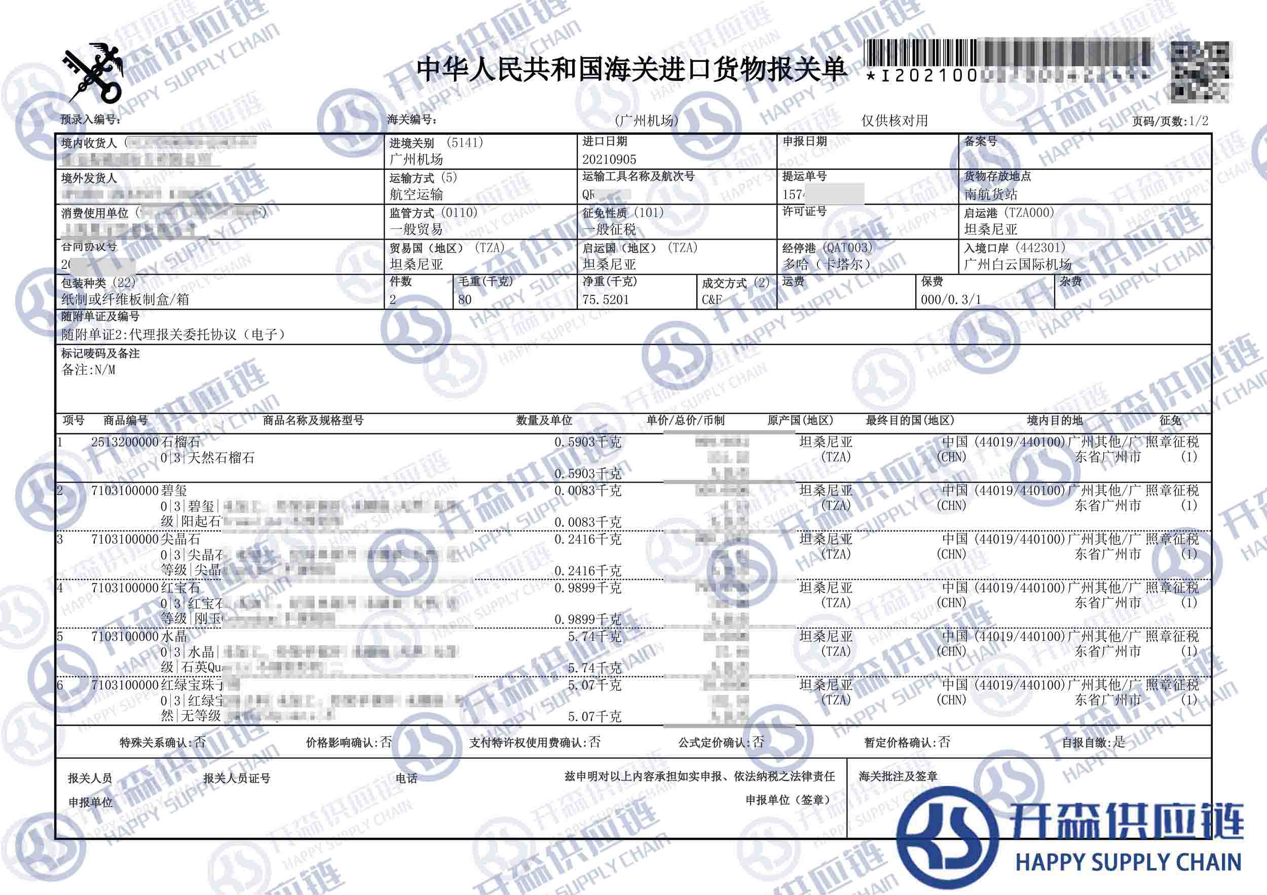 1、確認寶石海關編碼和進口稅率