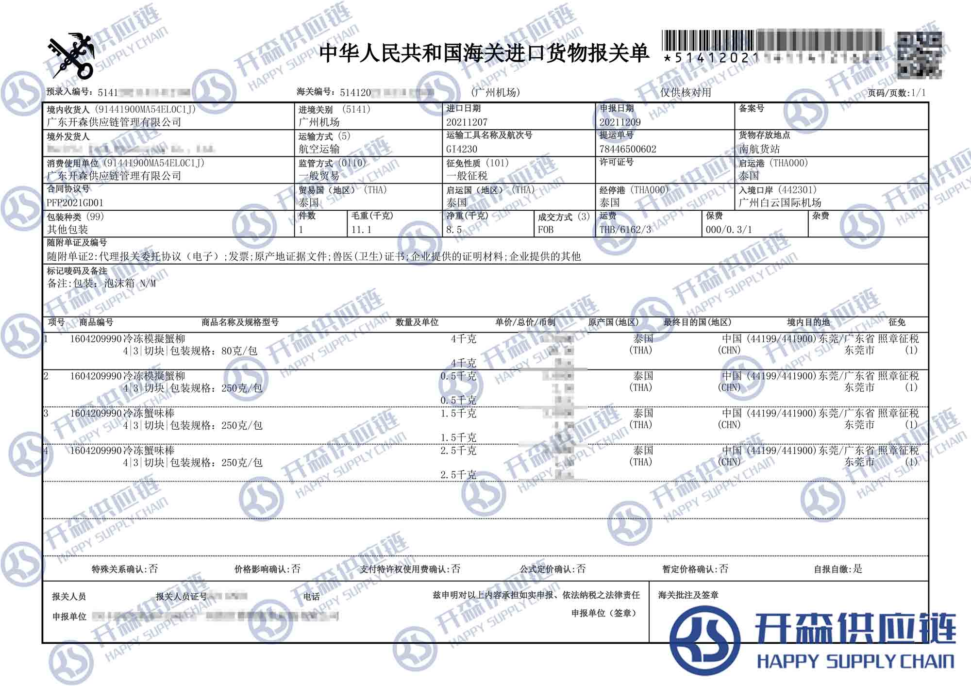 一、泰國(guó)蟹柳進(jìn)口報(bào)關(guān)代理案例詳情