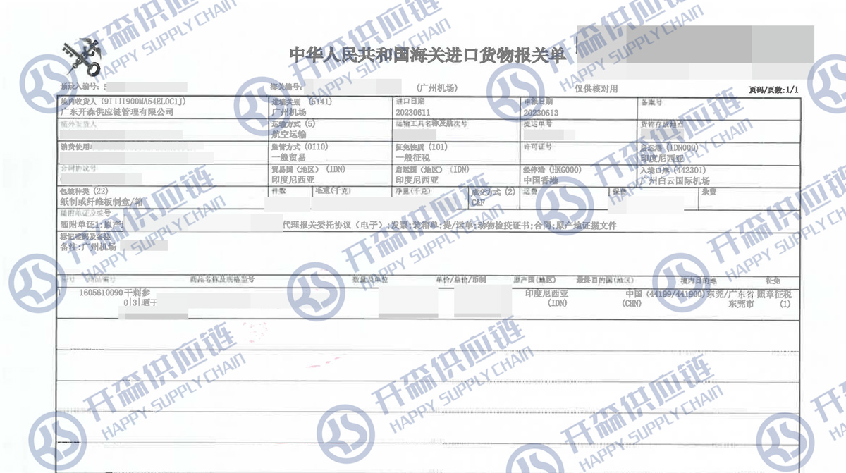 【本文結語】 上述就是印度尼西亞干刺參進口報關清關代理服務【經(jīng)典案例】的全部內(nèi)容,希望能對您有所幫助,如有水產(chǎn)品進口報關上任何疑問及問題可隨時在線聯(lián)系我們或撥打 18002611553,開森供應鏈擁有豐富的水產(chǎn)品進口報關操作經(jīng)驗及案例,10余年進口經(jīng)驗為您所用,各類進口疑難都能為您一一解答及協(xié)助快速處理解決!