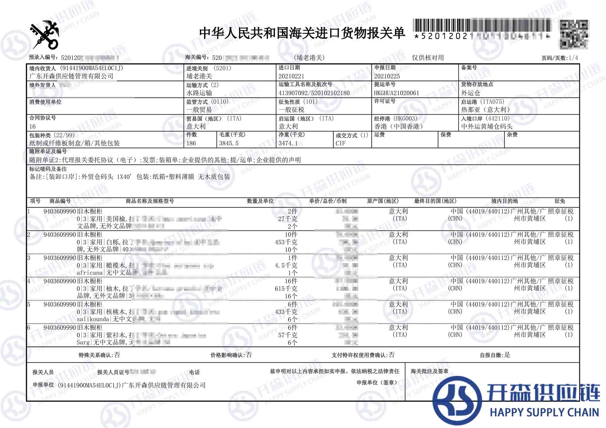 一、意大利二手舊木櫥柜家具進(jìn)口報關(guān)代理案例詳情