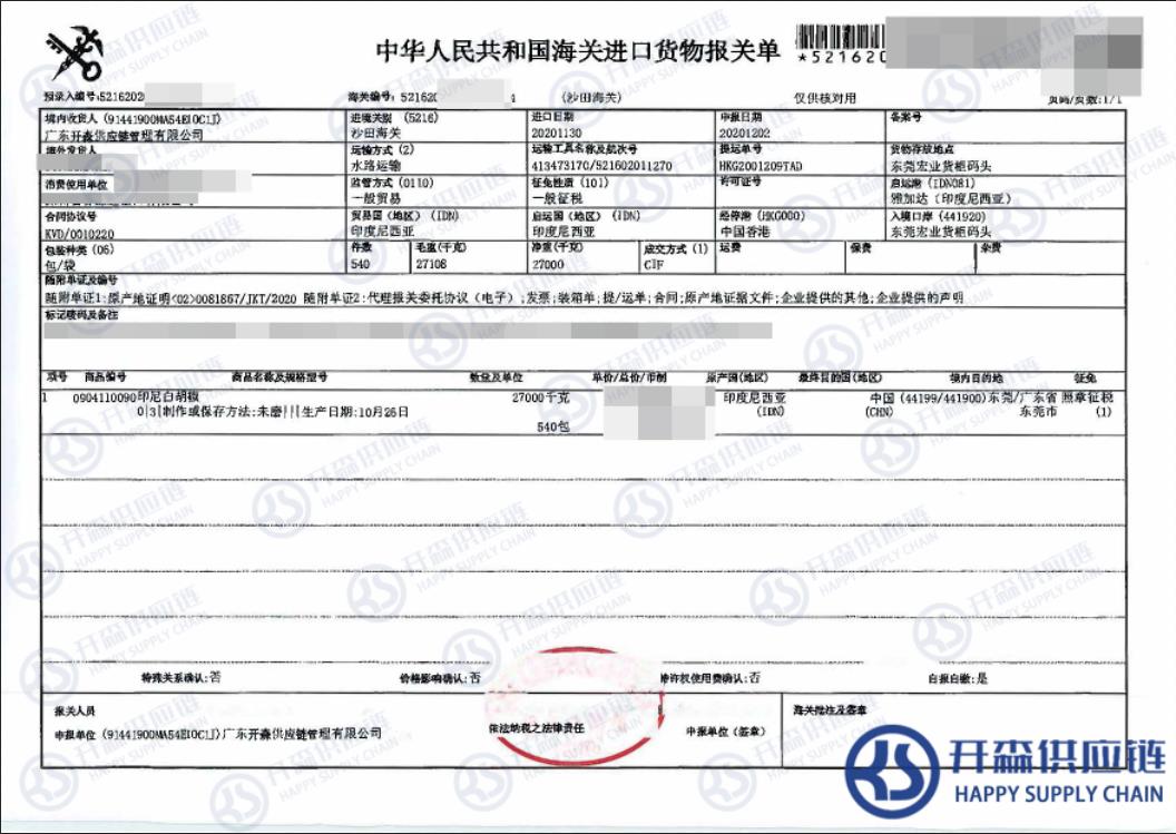 二、胡椒海運(yùn)進(jìn)口清關(guān)流程