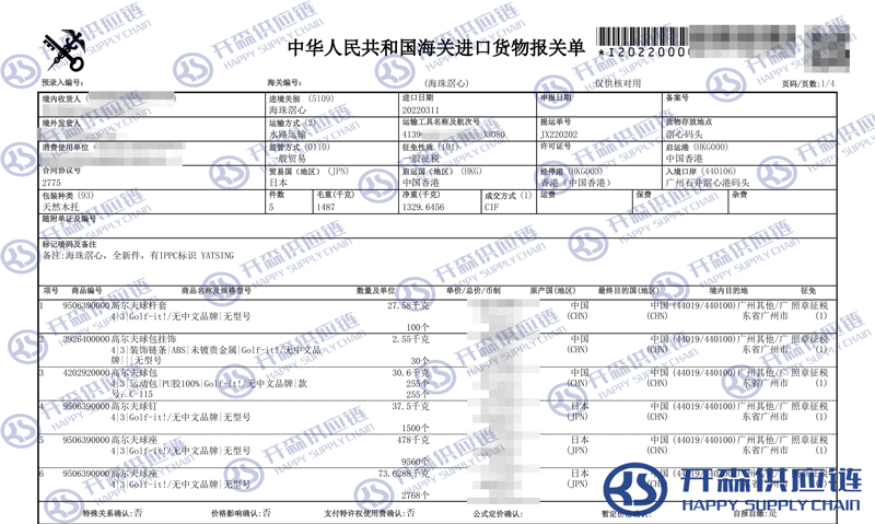開森進口供應鏈擁有豐富的高爾夫球桿用品進口報關操作經驗及案例,十余年操作經驗及案例可供參考,可按需定制高爾夫球桿用品進口方案,幫助客戶解決進口難題,快速進口清關到港到貨。