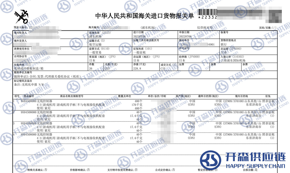【本文結(jié)語(yǔ)】 上述就是日本索尼PS5游戲機(jī)進(jìn)口清關(guān)報(bào)關(guān)代理服務(wù)【經(jīng)典案例】的全部?jī)?nèi)容,希望能對(duì)您有所幫助,如有游戲機(jī)進(jìn)口報(bào)關(guān)上任何疑問(wèn)及問(wèn)題可隨時(shí)在線聯(lián)系我們或撥打 18002611553,開(kāi)森供應(yīng)鏈擁有豐富的游戲機(jī)進(jìn)口報(bào)關(guān)操作經(jīng)驗(yàn)及案例,10余年進(jìn)口經(jīng)驗(yàn)為您所用,各類(lèi)進(jìn)口疑難都能為您一一解答及協(xié)助快速處理解決!
