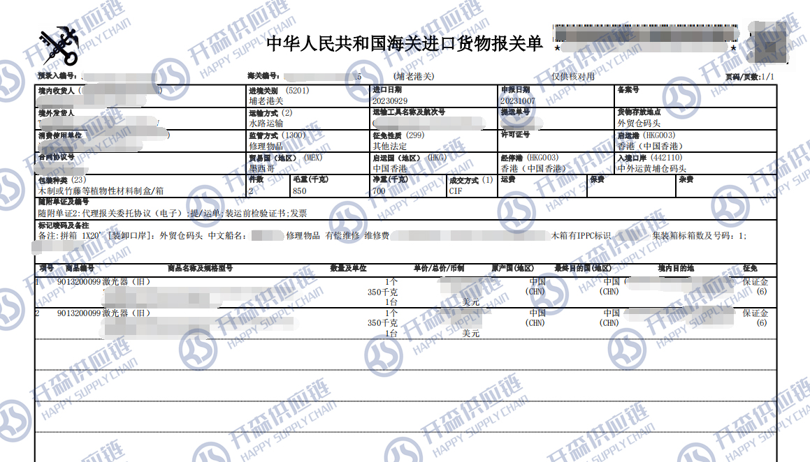 一、墨西哥舊激光器退運(yùn)返修報(bào)關(guān)代理案例詳情