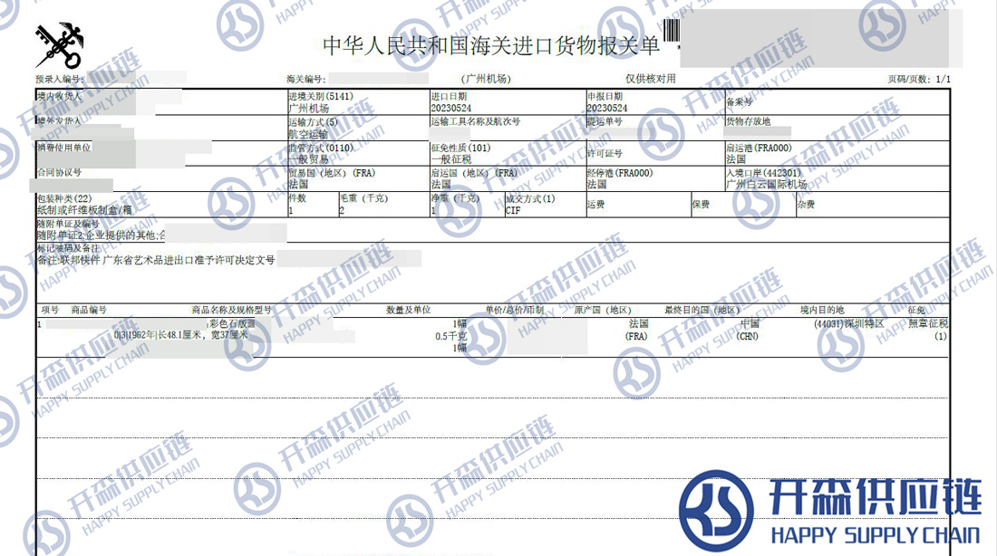 開森進口供應鏈擁有彩色石版畫進口報關操作經驗及案例,十余年操作經驗及案例可供參考,可按需定制彩色石版畫進口方案,幫助客戶解決進口難題,快速進口清關到港到貨。